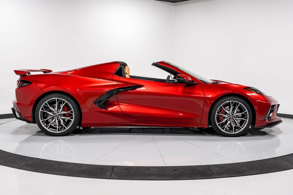 This is a smoke-free Carfax certified 2025 Chevrolet Corvette Stingray Convertible 2LT equipped with a 6.2L V8 DI HP engine and an 8-speed Dual Clutch transmission. This car is finished in an elegant Red Mist Metallic color and Natural leather interior along with 8-way power GT2 bucket seats.