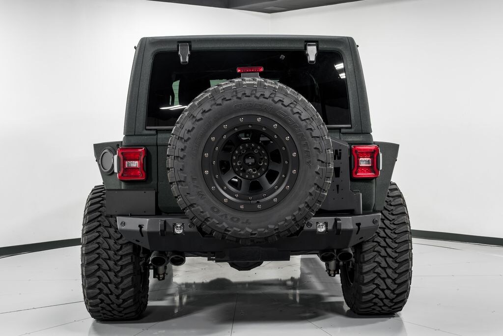 This is a smoke-free Carfax certified 2023 Jeep Wrangler Rubicon 392 equipped with a 6.4L HEMI V8 470 hp /470 lb-ft torque engine and an 8-speed automatic transmission and 4X4. This Jeep is finished in a Kevlar Green (Original Sting Gray Clear Coat Exterior Paint) exterior color and Black and Green (originally Black) Leather interior.