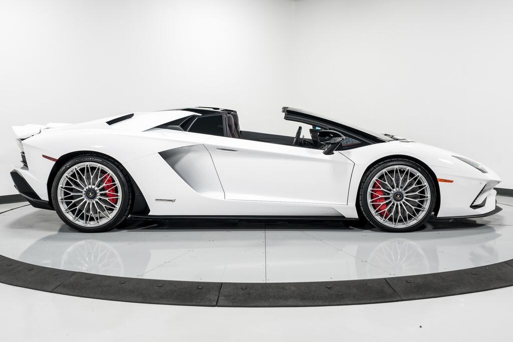 This is a smoke free Carfax certified 2018 Lamborghini Aventador Roadster equipped with a 6.5 730HP and 507 lb-ft of torque V12 engine and a 7-speed ISR (auto & paddle shift) transmission with AWD and AWS. This car is finished in Bianco Isi (Gloss White) exterior color with Nero Ade (Black) leather interior along with contrast stitching.
