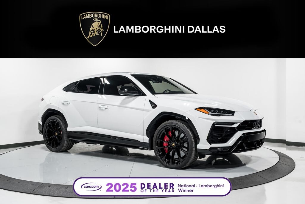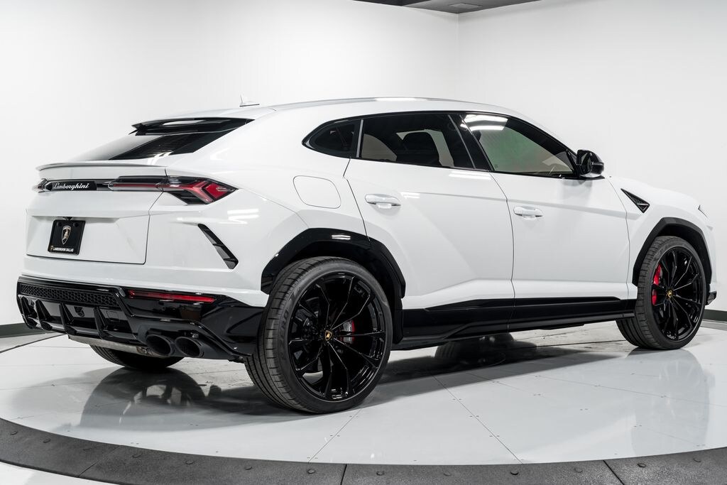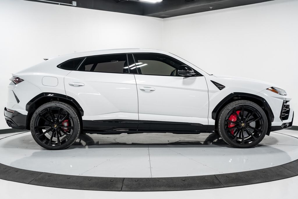 This 2022 Lamborghini Urus equipped with a 4.0L V-8 Bi-Turbo engine with an 8-speed Automatic (auto & paddle shift) transmission with AWD and 4-wheel steering system. This Urus S is finished in an elegant Bianco Icarus (White Metallic) exterior color and Nero Ade (Black) full leather interior along with contrast stitching throughout.
