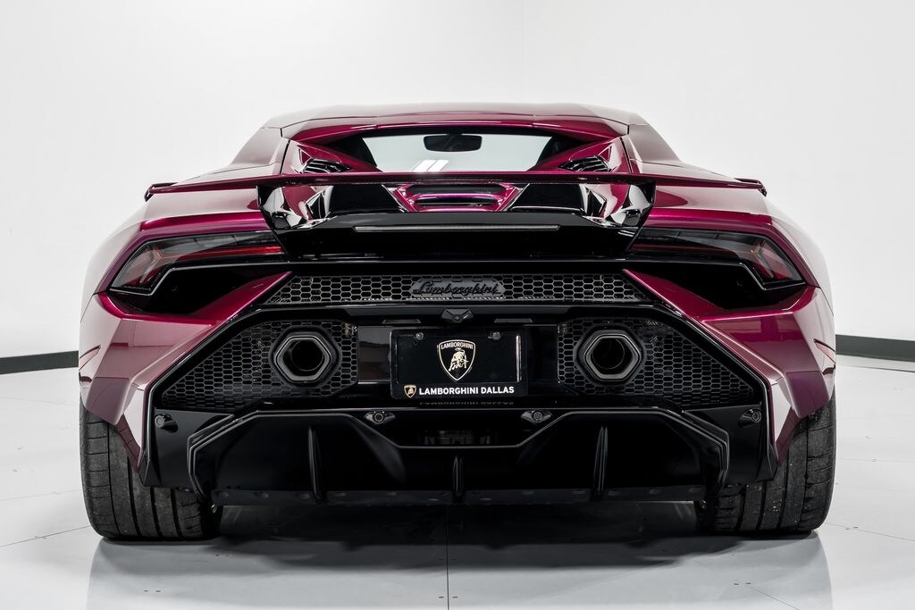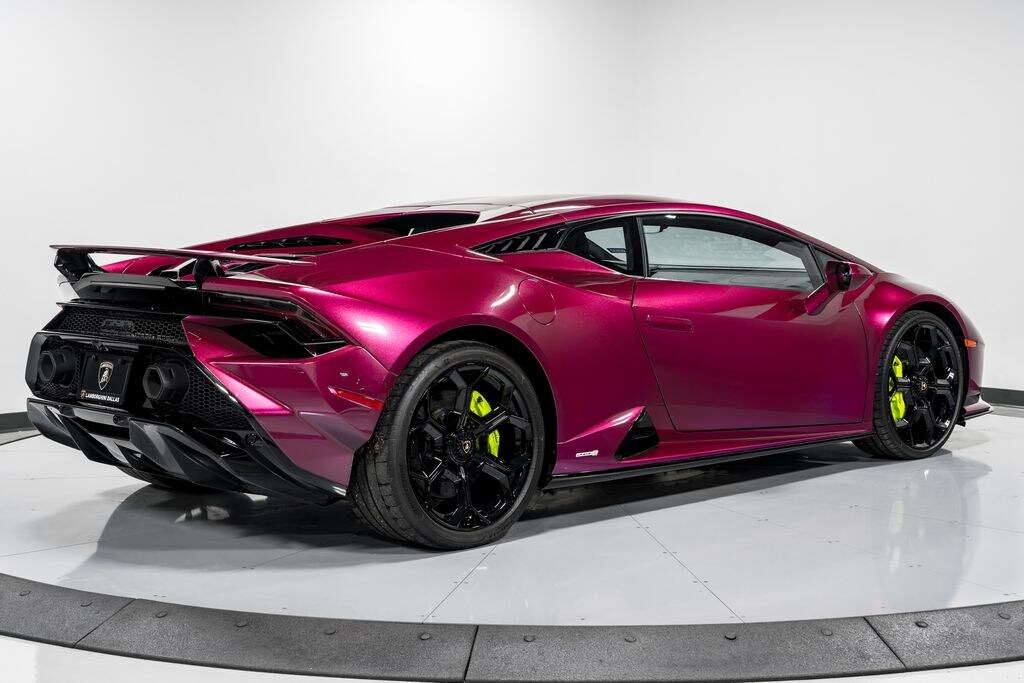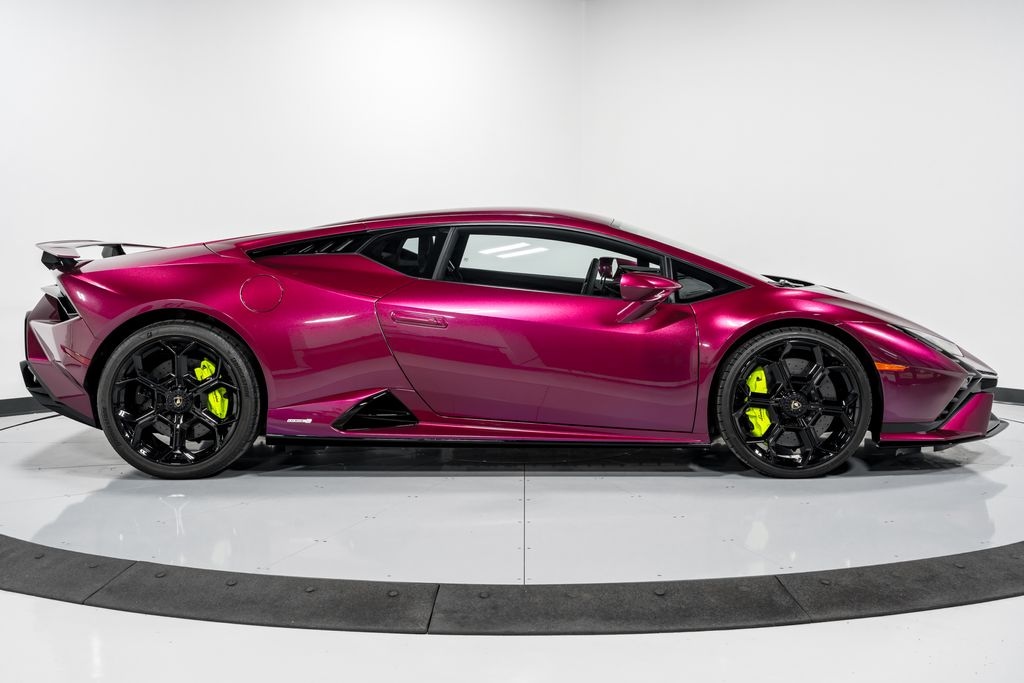 This is a one locally owned smoke free Carfax certified 2024 Lamborghini Huracan Tecnica equipped with a 5.2L V10 631HP/417 lb-ft of torque engine and a 7-speed LDF dual-clutch (auto & paddle shift) transmission with RWD and AWS. This car is finished in Viola Bast (Metallic Violet) exterior color with Nero Ade (Black) Leather and Verde Scandal (Green) interior along with contrast stitching.