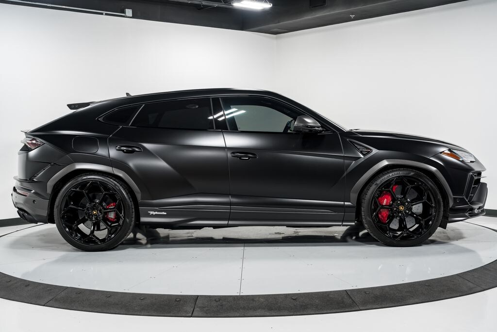 This 2024 Lamborghini Urus Performante equipped with a 4.0L V-8 Bi-Turbo engine with an 8-speed Automatic (auto & paddle shift) transmission with AWD and 4-wheel steering system. This Urus S is finished in an elegant Nero Nemesis Matt (Matt Black) exterior color and Nero Cosmus (Black) interior along with contrast stitching throughout.