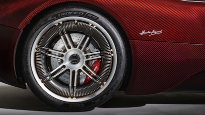 The cutting-edge technology employed in the fabrication of materials for the Utopia Roadster is not just about carbon: even the metal parts are incredibly sophisticated. The eight suspension triangles, forged in aircraft-grade aluminum alloy, are designed to guarantee both strength and lightness. The recent rebirth of Modena Design, a historic Pagani-owned company, today allows total control over every aspect of the production of components in aluminum, titanium, and special metals, from design to engineering, to manufacture with the most advanced equipment currently available, which also involves using the noble technique of milling from solid metal.