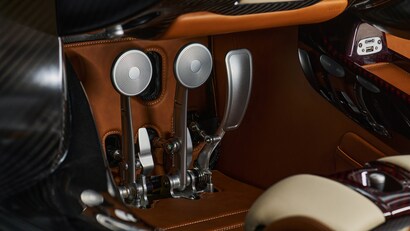 The Utopia's seven-speed manual gearbox is a marvel of ultra-modern design, yet retains traditional mechanics and is operated by a classical gear lever with a titanium grille. An object of sophisticated workmanship that is as enchanting to the eye as it is enjoyable to the touch. Each and every part of the clearly visible mechanism is finished with the greatest care and attention, the polished knob itself providing an ideal grip. For those who prefer lightning-fast changes, there is the AMT automated gearbox controlled via paddle shifters mounted on the steering wheel. Software strategies have further improved speed and comfort so that the driver feels as comfortable on the road as he does on the racetrack. Pagani Automobili has always been dedicated to the pursuit of timeless design, celebrating the elegance of manual control as the purest expression of mechanical art. From the time of its earliest creations, it has embraced the enduring appeal of analog technology, enhancing the beauty and functionality of knobs, dial hands, buttons, and levers. The development of sophisticated components, such as a manual gearbox capable of meeting the high expectations of Pagani's customers, today represents an even more formidable technological challenge than in the past.